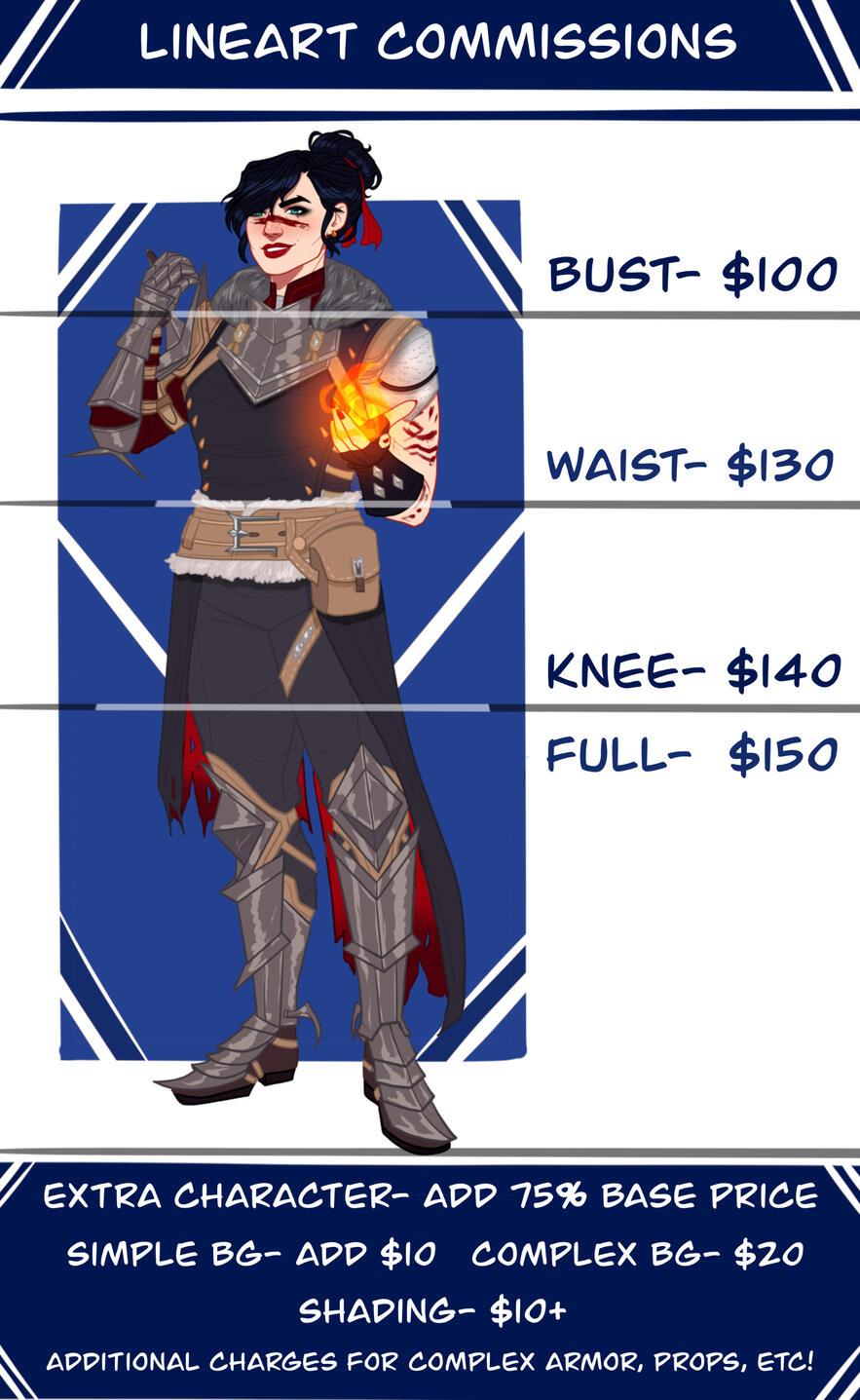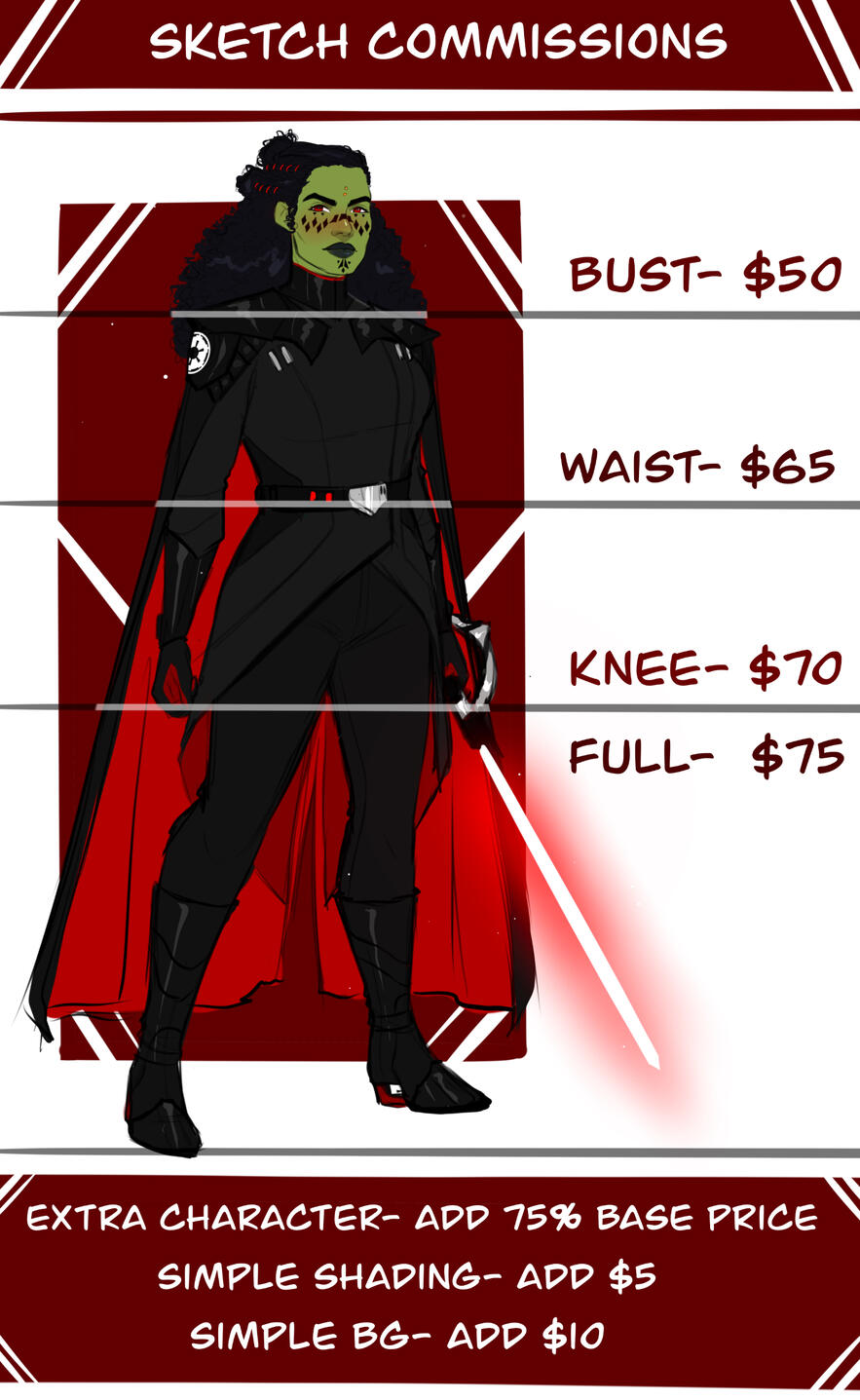 When you send me your request, I will need to know what you want done, as many references pictures as you can send to me (faceclaims, poses, art, etc.) Any bits of their personality you think would be useful, PLEASE have visual references, it is too difficult to go off of description alone.