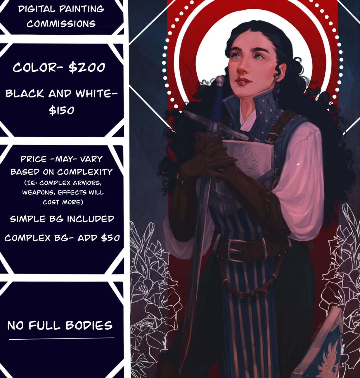 By commissioning me, the client acknowledges that they understand AND agree to the following terms.Client understands this transaction is nonrefundable unless I cannot complete the work.Client understands that PayPal fees will be added to the invoiceRequests for additional revisions will be charged accordingly, though I reserve the right to decline any revisions I feel to be impractical.I hold all rights to finished commissions, and may use them as I see fit (on social media, in a portfolio, etc).Client has the right to use and share the commission as they see fit, provided that:- They do not claim any credit for its creation.- They do not reproduce, resell, or use the commission in any commercial form or otherwise unless an agreement has been reached-Client shall not reproduce and/or otherwise use the Work in any manner for purposes of training artificial intelligence technologies to generate work, including without limitation, technologies that are capable of generating works in the same style or genre as the Work. Nor shall Client sublicense others to reproduce and/or otherwise use the Work in any manner for purposes of training artificial intelligence technologies to generate work.Client agrees that if they do not send the necessary information or communicate properly within an appropriate timeframe, -2 months- from last received correspondence, their commission will be shelved and will NOT be refunded.I am NOT responsible for chasing down a client after I have sent an email and not been replied to.I reserve the right to cancel or decline any and all commissions at my own discretion.
